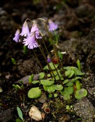 Bylina 2-10 cm wys. Blaszki liściowe 0,5-2 cm szer., okrągłe do okrągłonerkowatych. Kwiaty zwykle pojedynczo, rzadko 2. Korona 8-15 mm dł., wąskodzwonkowata, lawendowofioletowa. Kw. IV-V.